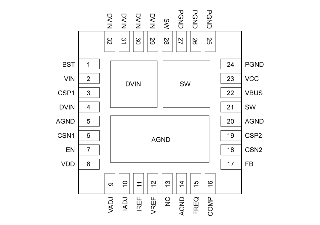 | 20 | AGND | 模拟接地。将PGND和AGND在IC下的热焊盘上连接在一起。 |