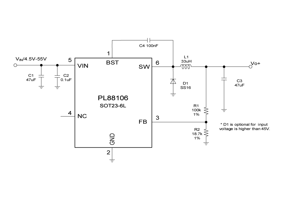 PL88106是一款55V高压同步降压转换器 SOT23-6L封装:样品订购 SOP8封装:样品订购